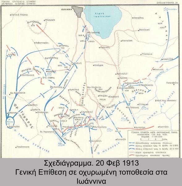 Η επίθεση στις 20 Φεβρουαρίου του 1913 (Σημ.Συντάκτη: Την είδαμε σε χθεσινό σημείωμά μας για την εκπόρθηση των οχυρών του Μπιζανίου) αποτέλεσε την τελευταία καθοριστική μάχη για την κατάληψη της πόλης των Ιωαννίνων. Η καταστροφή των τηλεφωνικών γραμμών από το 1ο Σύνταγμα Ευζώνων συνέβαλε στην παραπλάνηση και τον αιφνιδιασμό της τουρκικής Διοίκησης και στην τολμηρή διείσδυση του Συντάγματος, καθορίζοντας το αποτέλεσμα της τελευταίας μάχης, που ήταν η κατάληψη της πόλης των Ιωαννίνων. Ο Τούρκος διοικητής της, Εσσάτ Πασάς, την παρέδωσε «άνευ όρων», στις 21 Φεβρουαρίου 1913.»