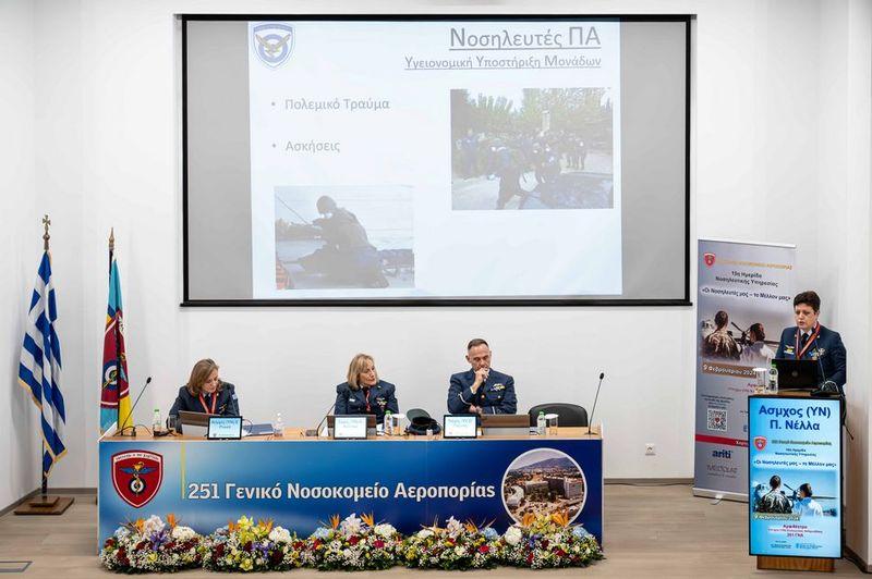 Η Ημερίδα τελούσε υπό την αιγίδα του τμήματος Νοσηλευτικής της Σχολής Επιστημών Υγείας του Εθνικού Καποδιστριακού Πανεπιστημίου Αθηνών, τη δε έναρξή της κήρυξε ο Αρχηγός ΓΕΑ Αντιπτέραρχος (Ι) Δημοσθένης Γρηγοριάδης. Χαιρετισμούς απηύθηναν επίσης ο Διευθυντής της Διευθύνσεως Υγειονομικού του ΓΕΑ Υποπτέραρχος (ΥΙ) Παναγιώτης Κωστόπουλος, ο Πρόεδρος του τμήματος Νοσηλευτικής της Σχολής Επιστημών Υγείας του ΕΚΠΑ καθηγητής Παύλος Μυριανθεύς, ο Διοικητής του 251 ΓΝΑ Ταξίαρχος (ΥΙ) Κωνσταντίνος Σιαφάκας, η Διευθύντρια της Νοσηλευτικής Υπηρεσίας του Νοσοκομείου Ταξίαρχος (ΥΝ) Αλεξάνδρα Καρβουνιάρη και η Πρόεδρος της οργανωτικής επιτροπής της Ημερίδος Σμήναρχος (ΥΝ) Αθηνά Καρυδάκη.