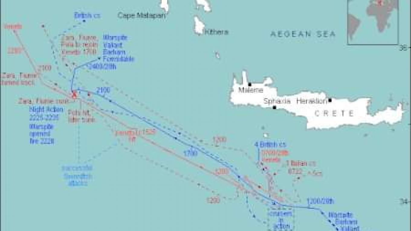 Η προαναφερθείσα ναυτική σύγκρουση, η μεγαλύτερη που πραγματοποιήθηκε στη Μεσόγειο στη διάρκεια του Β’ Παγκοσμίου Πολέμου (Β’ΠΠ) αφορά μία ναυτική σύγκρουση στην οποία σημειώθηκε εμπλοκή 40 πλοίων, με θωρηκτά, καταδρομικά και αντιτορπιλλικά και από τις δύο πλευρές, με το Ιταλικό Ναυτικό, που «είδε» πέντε συνολικώς σκάφη (3 βαρέα καταδρομικά και 2 αντιτορπιλικά) να βυθίζονται ενώ το καμάρι του, το θωρηκτό “Vittorio Veneto”, τη «γλύτωσε φτηνά», κατά το κοινώς λεγόμενο, με βαρύτατες ζημιές, μένοντας για πέντε μήνες εκτός μάχης για επισκευές πάνω στη ναυπηγική κλίνη και ουσιαστικώς εκτός κάθε συγκρούσεως στο υπόλοιπο του πολέμου μέχρι τον Σεπτέμβριο του 1943, που συνθηκολόγησε η Ιταλία. Οι Βρετανοί από την πλευρά τους δεν είχαν ΚΑΜΙΑ απώλεια, κανενός πλοίου τους!