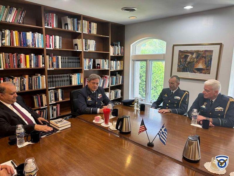 Ο Έλλην Αρχηγός κατά την παραμονή του στην Ουάσινγκτων συναντήθηκε με την Πρέσβη της Ελλάδος κυρία Αικατερίνη Νάσικα, καθώς και με τα στελέχη των Ενόπλων Δυνάμεων που υπηρετούν στη Στρατιωτική Αντιπροσωπεία, με τον Πρόεδρο και Διευθύνοντα Σύμβουλο του American Hellenic Institute, κ. Νίκο Λαριγκάκη, καθώς και με τους κ.κ. Mike Camp και Andrew Manato, με τους οποίους συζήτησε θέματα της ελληνοαμερικανικής αμυντικής συνεργασίας και την περαιτέρω ενίσχυση των δεσμών της Ομογένειας με τις Ένοπλες Δυνάμεις.