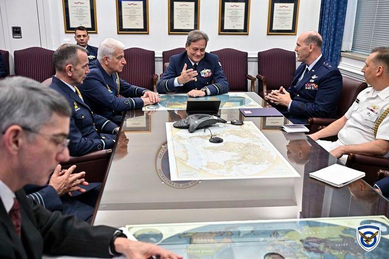Κατά τη διάρκεια της παραμονής του στην Ουάσινγκτων ο Πτέραρχος Γρηγοριάδης μετέβη στο «Πεντάγωνο», όπου συναντήθηκε με τον ομόλογό του Αρχηγό του Επιτελείου των Αεροπορικών Δυνάμεων των ΗΠΑ, Πτέραρχο David Allvin, με τον οποίο συζητήθηκαν ζητήματα κοινού ενδιαφέροντος, με ιδιαίτερηέμφαση στην περαιτέρω ενίσχυση και αναβάθμιση της διμερούς αμυντικής συνεργασίας, κυρίως στους τομείς των επιχειρησιακών δυνατοτήτων και της διμερούς εκπαιδεύσεως.