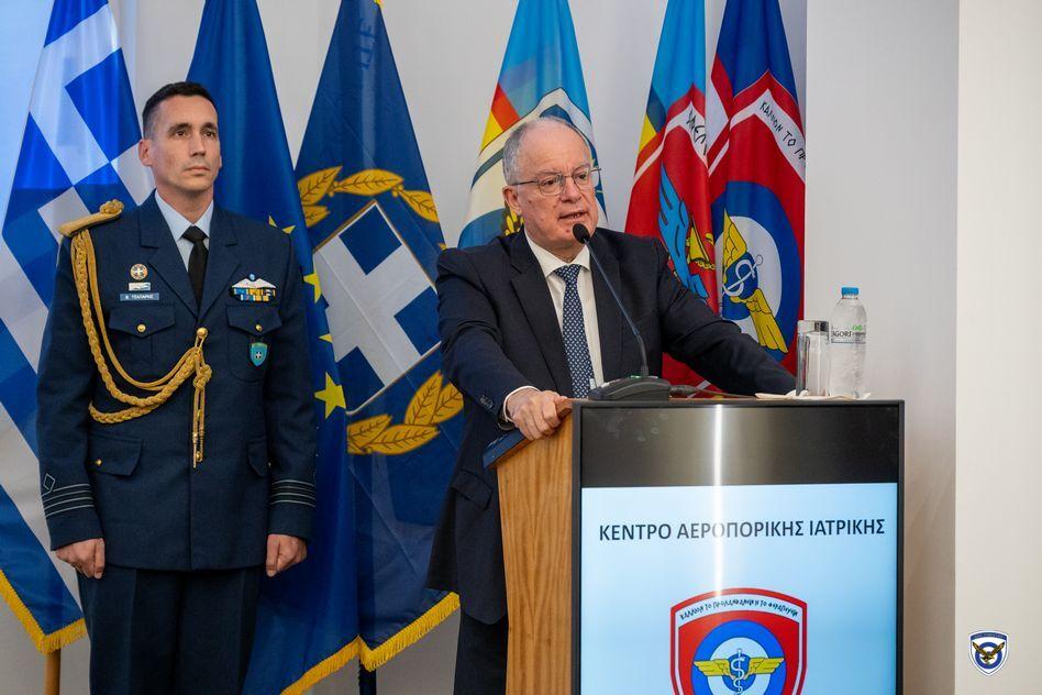 «Εξοχότατε Κύριε Πρόεδρε της Δημοκρατίας, Είναι ιδιαίτερη τιμή για όλους μας που παρευρίσκετε σήμερα εδώ. Η παρουσία του Ανώτατου Πολιτειακού Άρχοντα στα εγκαίνια λειτουργίας της νέας συσκευής απώλειας προσανατολισμού στο Κέντρο Αεροπορικής Ιατρικής, υπογραμμίζει τη σημασία που αποδίδει η Πολιτεία στην ασφάλεια πτήσεων και στην προστασία του ανθρώπινου δυναμικού των Ενόπλων Δυνάμεων.