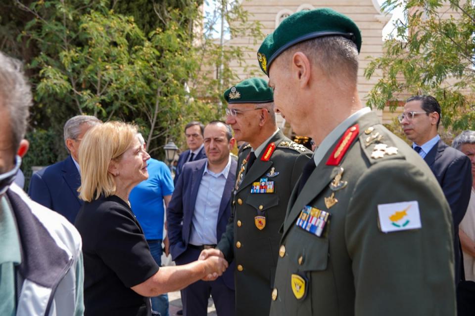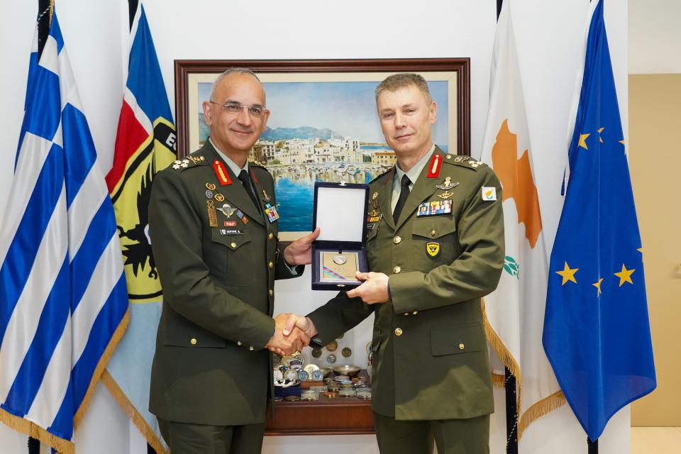 Στο πλαίσιο της επισκέψεως αυτής, συμφώνως με το ΓΕΕΘΑ, την Παρασκευή 31 Μαΐου 2024 ο Α/ΓΕΕΘΑ επισκέφθηκε το Γενικό Επιτελείο Εθνικής Φρουράς (ΓΕΕΦ), όπου μετά την επίσημη υποδοχή του από τον Α/ΓΕΕΦ, έγινε δεκτός από τον Υπουργό Άμυνας της Κυπριακής Δημοκρατίας κ. Βασίλη Πάλμα, με τον οποίο συζήτησαν τις τρέχουσες διεθνείς και περιφερειακές εξελίξεις καθώς και τις προκλήσεις ασφαλείας που αντιμετωπίζουν η Ελλάδα και η Κύπρος στην Ανατολική Μεσόγειο και στην Μέση Ανατολή.