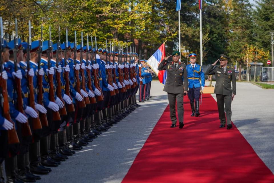 Η επίσημη υποδοχή πραγματοποιήθηκε στο Γενικό Επιτελείο Ενόπλων Δυνάμεων της Σερβίας όπου τον Έλληνα Αρχηγό υποδέχθηκε ο ομόλογός του, για να ακολουθήσει η κατ’ ιδίαν συνάντηση, στη διάρκεια της οποίας συζητήθηκαν οι τρέχουσες διεθνείς και περιφερειακές εξελίξεις καθώς και τρόποι εμβαθύνσεως της στρατιωτικής συνεργασίας μεταξύ των Ενόπλων Δυνάμεων των δύο χωρών, και ενημέρωση όπου παρουσιάστηκαν θέματα δραστηριοτήτων των Σερβικών ΕΔ.