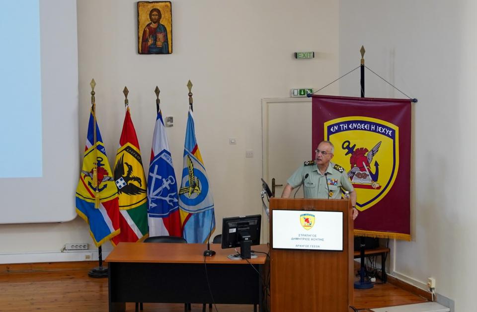 Η προαναφερθείσα ομιλία του Αρχηγού πραγματοποιείται στο πλαίσιο της επιμορφώσεως των σπουδαστών της Σχολής, και σε αυτήν ο Στρατηγός Χούπης τους ενημέρωσε για θέματα που αφορούν τη Δομή Δυνάμεων, καθώς επίσης και για τα τρέχοντα εξοπλιστικά προγράμματα των Κλάδων και την καινοτομία στις Ένοπλες Δυνάμεις. Ο ίδιος δεν παρέλειψε να αναφερθεί στις εξελίξεις στο τρέχον γεωστρατηγικό περιβάλλον και τις πολλαπλές εξελισσόμενες κρίσεις, καθώς και στις σύγχρονες προκλήσεις ασφάλειας.