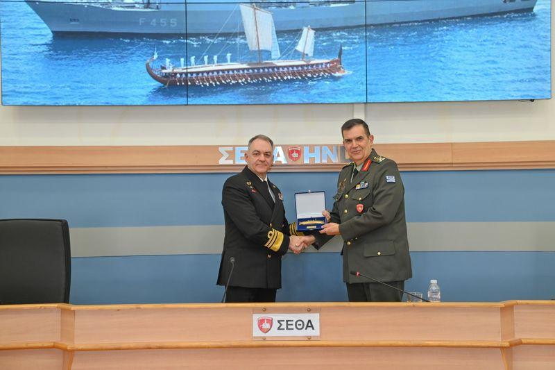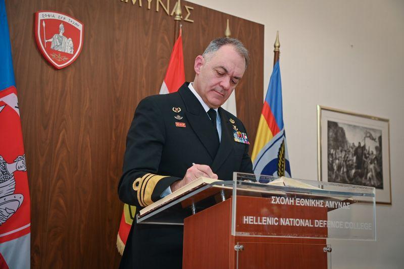 Ο Αρχηγός μετέβη στη Σχολή, που αποτελεί το «πανεπιστήμιο», τρόπον τινά στην ακαδημαϊκή εκπαίδευση του προσωπικού των Ενόπλων Δυνάμεων, των Σωμάτων Ασφαλείας, αλλά και Υπηρεσιών του Δημοσίου Τομέως, όπως η Εθνική Υπηρεσία Πληροφοριών και άλλες, όπου έγινε δεκτός από τον Διοικητή της Αντιστράτηγο Αθανάσιο Σαρδέλλη (Πυροβολητής, Τάξεως 1988 της Στρατιωτικής Σχολής Ευελπίδων) και στη συνέχεια ανέπτυξε το προαναφερθέν θέμα που αφορούσε το σήμερα, αλλά κυρίως το αύριο για το Πολεμικό μας Ναυτικό.