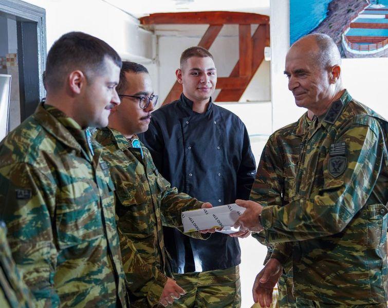 «Κατά τη διάρκεια της επίσκεψής του, ο Αρχηγός, ευχαρίστησε το προσωπικό για το έργο που επιτελεί και αντάλλαξε μαζί του ευχές και δώρα, για τις γιορτές των Χριστουγέννων και της Πρωτοχρονιάς», συμφώνως με το ΓΕΣ.