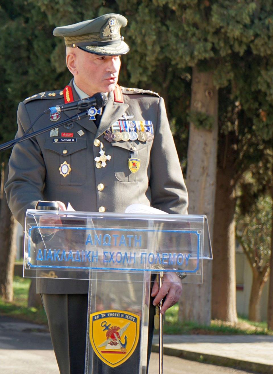 Αντιναυάρχου Θεόδωρου Μικρόπουλου ΠΝ, από τον Αντιπτέραρχο (Ι) Ευάγγελο Τουρβαλή, ο οποίος αποστρατεύτηκε στη διάρκεια των πρόσφατων έκτακτων κρίσεων στις Ένοπλες Δυνάμεις, στον Υποστράτηγο Μιχαήλ Πλουμή.