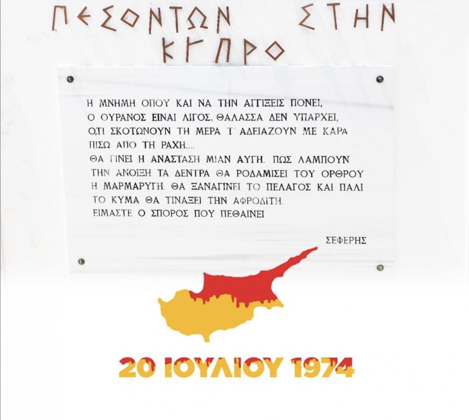 Την αυτονόητη μεν, αλλά διαχρονικής αξίας και επίκαιρη δήλωση ότι «Για τις Ελληνικές Ένοπλες Δυνάμεις η Κύπρος κείται πλησίον» τόνισε – μεταξύ άλλων – ο Υπουργός Εθνικής Αμύνης κ. Νίκος Δένδιας, στην ανάρτησή του στον προσωπικό του λογαριασμό στο «Χ», με αφορμή τη σημερινή συμπλήρωση 50 ετών από την Τουρκική εισβολή στην Κύπρο, στις 20 Ιουλίου 1974.