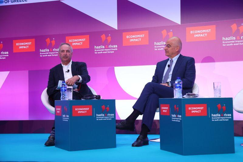 Το θέμα της ενισχύσεως της αμυντικής βιομηχανίας της Τουρκίας, χωρίς όμως να υπάρχει και αντίστοιχη δέσμευση από την πλευρά της ότι θα αλλάξει την προσέγγισή της προς την Ελλάδα, που την χαρακτήρισε ως «πρόβλημα», έθεσε για μία ακόμη φορά – μεταξύ άλλων – ο Υπουργός Εθνικής Αμύνης κ. Νίκος Δένδιας κατά τη συζήτηση που είχε με τον επικεφαλής Διπλωματικό Συντάκτη του “Economist” κ. Daniel Franklin, στο πλαίσιο της ενότητος «Η Στρατηγική της Ευρώπης για την Άμυνα και την Ασφάλεια» («Europe’s strategy on defence and security»), που πραγματοποιήθηκε στο πλαίσιο της «29ης Συζητήσεως Στρογγυλής Τραπέζης», που διοργάνωσε και φέτος το “Economist” στο Λαγονήσι.