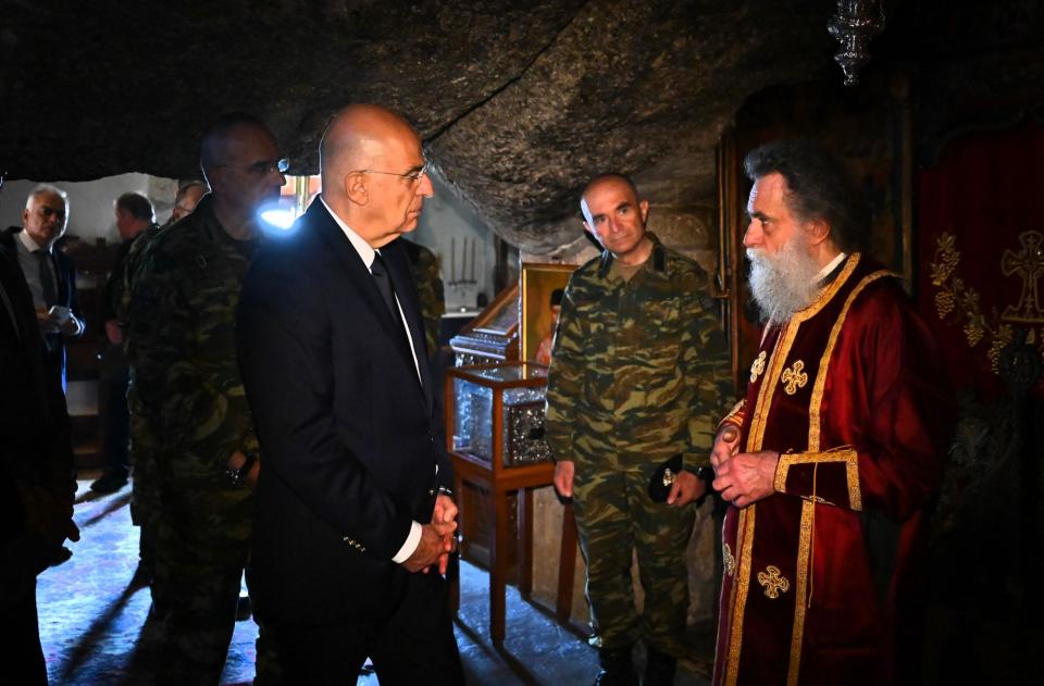 Ακολούθως, ο κ. Δένδιας μετέβη στην Ιερά Μονή Ιωάννου Θεολόγου στην Πάτμο, όπου παρακολούθησε τη Θεία Λειτουργία, ξεναγήθηκε στο Μουσείο της Ιεράς Μονής, καθώς και στο Σπήλαιο της Αποκαλύψεως, ενώ παρέστη στην Ακολουθία του Νιπτήρος, την οποία τέλεσε ο Ηγούμενος της Ιεράς Μονής Πάτμου Πανοσιολογιότατος Κύριλλος, παρουσία τουΥφυπουργού Ναυτιλίας και Νησιωτικής Πολιτικής κ.Ιωάννη Παππά, των Βουλευτών κ.κ.Εμμανουήλ Κόνσολα, Βασίλειου – ΝικόλαουΥψηλάντη, Γεωργίου Νικητιάδη, του αναπληρωτή Περιφερειάρχη Νοτίου Αιγαίου κ.ΑπόστολουΑσπράκη, των Δημάρχων Πάτμου κ.ΝικήταΤσαμπαλάκη και Καλυμνίων κ.ΙωάννηΜαστροκούκο, εκπροσώπων φορέων και εκατοντάδες πιστοί.