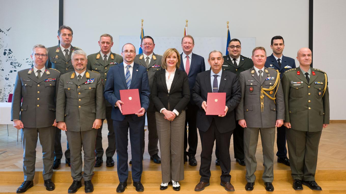 Η Διακήρυξη με τίτλο: «Αντιμετώπιση της εργαλειοποίησης του μεταναστευτικού ζητήματος στο πλαίσιο των Υβριδικών Απειλών» (Declaration: «Countering Instrumentalization of Illegal Migration in the framework of HybridThreats») υπογράφτηκε από τους επικεφαλής των Γενικών Διευθύνσεων Πολιτικής Εθνικής Αμύνης και Διεθνών Σχέσεων (ΓΔΠΕΑΔΣ) των υπουργείων Εθνικής Αμύνης των δύο χωρών, Δρ. Κωνσταντίνο Μπαλωμένο και Δρ. Arnold Kammel, αντιστοίχως, με την ευκαιρία της συναντήσεως αντιπροσωπειών των δυο πλευρών στη Βιέννη για την ολοκλήρωση της δράσεώς τους με θέμα: «Η Εργαλειοποίηση του Μεταναστευτικού – Προσφυγικού Ζητήματος και ο Ρόλος των Ενόπλων Δυνάμεων».
