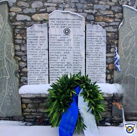 Σε τρία διαφορετικά σημεία της Ελλάδος πραγματοποιήθηκαν χθες επιμνημόσυνες Δεήσεις στη Μνήμη των 63 νεκρών Αεροπόρων, που έχασαν τη ζωή τους κατά την πτώση του μοιραίου μεταφορικού αεροσκάφους C-130H Hercules (s/n “748”) της 356 Μοίρας Τακτικών Μεταφορών (356 ΜΤΜ), που προσέκρουσε στην κορυφή του όρους Όρθυς (ή Όρθρυς, η παλαιά του ονομασία), στις 5 Φεβρουαρίου 1991.