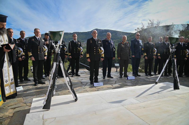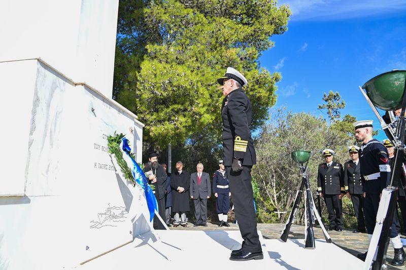 Επιμνημόσυνη δέηση για τους πεσόντες εν ώρα καθήκοντος του Πολεμικού Ναυτικού, στον πόλεμο και στην ειρήνη, πραγματοποιήθηκε στο Ναυτικό Οχυρό του Σκαραμαγκά, παρουσία του Αρχηγού ΓΕΝ Αντιναυάρχου Ιωάννη Δρυμούση ΠΝ, εκπροσωπώντας και τον Αρχηγό ΓΕΕΘΑ Στρατηγό Κωνσταντίνο Φλώρο.