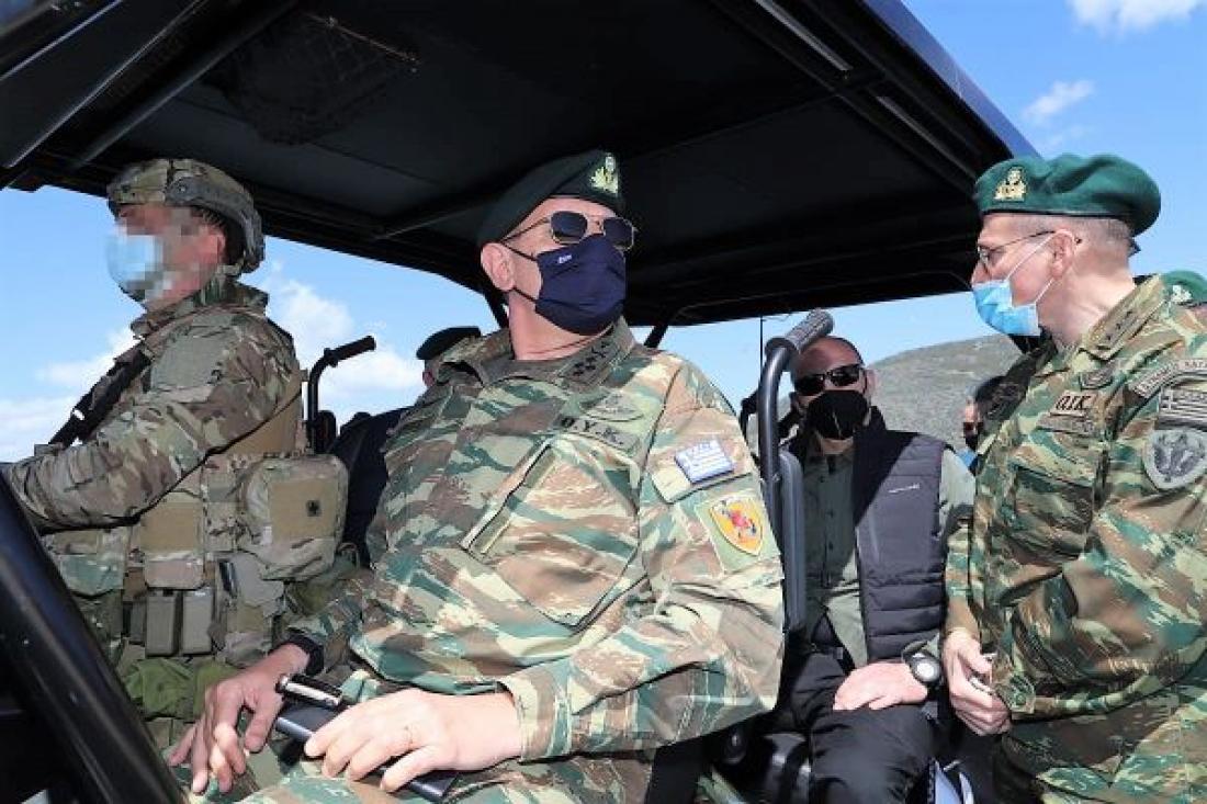 Τον αρχηγό ΓΕΕΘΑ συνόδευαν ο διοικητής της Ανώτατης Στρατιωτικής Διοίκησης Εσωτερικού και Νήσων αντιστράτηγος Νικόλαος Φλάρης και ο διοικητή της 98 Ανώτερης Διοίκησης Ταγμάτων Εθνοφυλακής υποστράτηγος Δημήτριος Τσιπίδης.