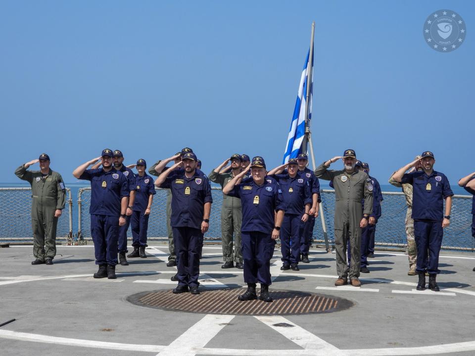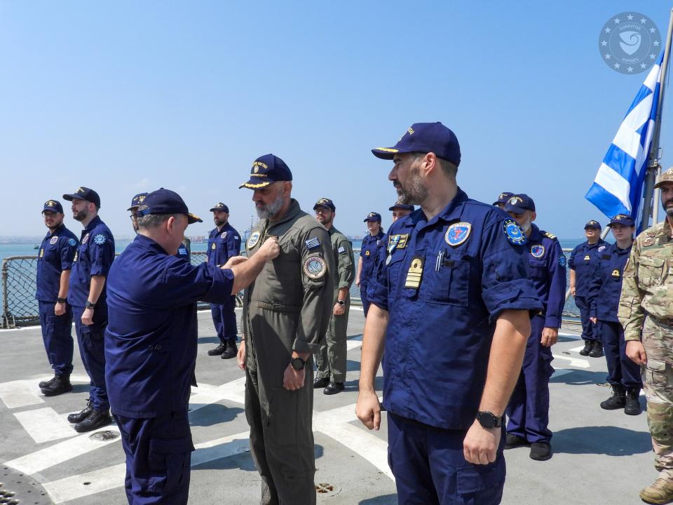 Η τελετή πραγματοποιήθηκε την περασμένη εβδομάδα και αξίζει να σημειωθεί ότι την προηγούμενη ημέρα της τελετής, ο Διοικητής της Επιχειρήσεως «ΑΣΠΙΔΕΣ» απένειμε το Μετάλλιο EUNAVFOR ASPIDES (EU) στο πλήρωμα της Ελληνικής φρεγάτας «ΣΠΕΤΣΑΙ», που θα αναχωρούσε επιστρέφοντας για τη χώρα μας, μετά την εκεί πολύμηνη παραμονή του στο πλαίσιο της επιχειρήσεως.