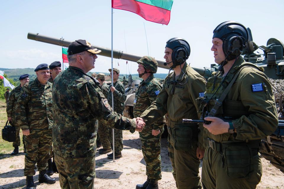 εκπρόσωπος του Αρχηγού ΓΕΣ Αντιστρατήγου Άγγελου Χουδελούδη και ο Αρχηγός των Χερσαίων Δυνάμεων της Βουλγαρίας Υποστράτηγος Deyan Deshkov.