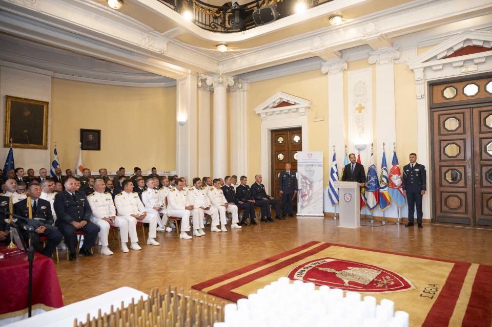 Ο ΥΦΕΘΑ στο χαιρετισμό του στη διάρκεια της τελετής, εξήρε το εκπαιδευτικό έργο της Σχολής υπογραμμίζοντας ότι αποτελεί το ανώτερο επίπεδο παραγωγής αμυντικής πολιτικής και στρατηγικής σκέψεως στον χώρο των Ενόπλων Δυνάμεων της χώρας, τονίζοντας επίσης ότι προτεραιότητα για την πολιτική ηγεσία του ΥΠΕΘΑ αποτελεί η περαιτέρω αναβάθμιση του εκπαιδευτικού έργου, της οργανώσεως και της λειτουργίας των στρατιωτικών σχολών, καθώς και η ενίσχυση της εξωστρέφειάς τους μέσα από τον πολλαπλασιασμό των συνεργειών με αντίστοιχα εκπαιδευτικά ιδρύματα του εξωτερικού και πανεπιστημιακές σχολές.