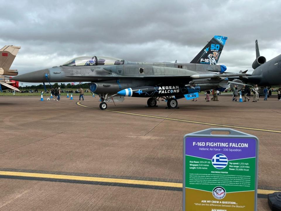 Δεύτερο, το 50 χρόνια από την πρώτη πτήση δοκιμών του μαχητικού F-16 και για το λόγο αυτό είχαν συγκεντρωθεί φέτος στο “RIAT 2024” μαχητικά F-16 από όλες τις Αεροπορίες – χρήστες του αεροσκάφους, μεταξύ των οποίων βεβαίως τα δύο ελληνικά F-16, αλλά και το αεροσκάφος F-16 Solo Display της Τουρκικής Αεροπορίας, που πραγματοποίησε μάλιστα και σχετική πτητική επίδειξη.