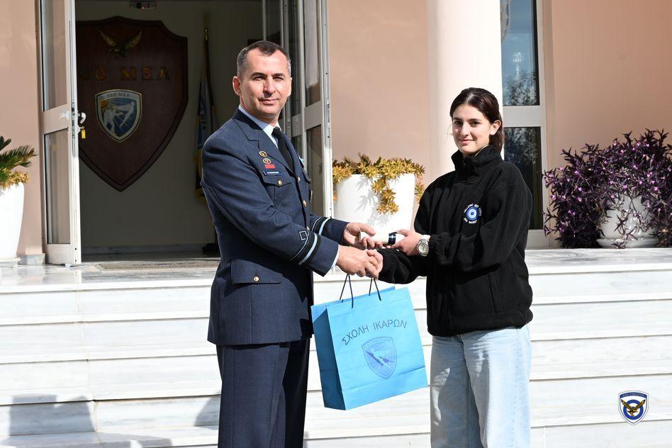 Μετά την ολοκλήρωση των πτήσεων, ο Διοικητής της Σχολής Ικάρων Υποπτέραρχος (Ι) Ματθαίος Κανουπάκης, συνομίλησε με τους μαθητές, τους επέδωσε αναμνηστικό δίπλωμα/πιστοποιητικό της πτήσεως και διάφορα άλλα αναμνηστικά δωράκια της ΠΑ και της Μοίρας.