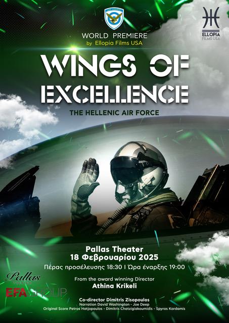 Στις 18 Φεβρουαρίου 2025, πραγματοποιείται στην Αθήνα η παγκόσμια πρεμιέρα του ντοκυμαντέρ της βραβευμένης δημοσιογράφου και σκηνοθέτιδος Αθηνάς Κρικέλη «Τα φτερά της αριστείας» της “Ellopia Films USA”, μια ελληνοαμερικανική παραγωγή που απαίτησε 16 μήνες γυρισμάτων σε αεροδρόμια και βάσεις της Πολεμικής Αεροπορίας (ΠΑ), διάστημα κατά το οποίο δόθηκε η δυνατότητα στη δημοσιογράφο – σκηνοθέτη και στην ομάδα παραγωγής της, να γνωρίσει εκ του σύνεγγυς και να αποτυπώσει στις εικόνες της αυτό τον ανθρώπινο ετοιμοπόλεμο οργανισμό που συνθέτει σήμερα την Ελληνική ΠΑ!