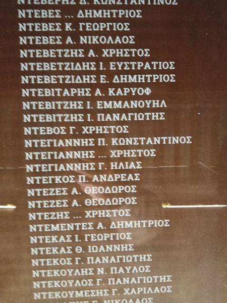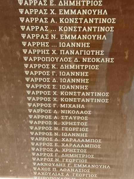 Ψάξαμε να βρούμε τα ονόματα του Συνταγματάρχη Δημητρίου Ψαρρού, ο οποίος δολοφονήθηκε στις 17 Απριλίου 1944, στο Κλίμα Δωρίδος, κατά την επιχείρηση εξουδετερώσεως της αντιστασιακής οργανώσεως της οποίας ηγείτο, του «5/42 Συντάγματος Ευζώνων», από άνδρες του ΕΛΑΣ και δολοφονήθηκε από τον Ταγματάρχη Ζούλα, όπως επίσης και του νεαρού Σημαιοφόρου Μαχίμου Ηλία Ντεγιάννη, αδελφού του δικαστή Ντεγιάννη, ο οποίος εκτελέστηκε για την αντιστασιακή του δράση στη διάρκεια της Κατοχής από τους Γερμανούς, τον Ιούνιο του 1943. Αμφότερα, τα ονόματα υπήρχαν, που σημαίνει ότι έχει γίνει πολύ καλή δουλειά από τη Διεύθυνση Ιστορίας Στρατού, σε συνεργασία φυσικά και με τις αντίστοιχες Υπηρεσίες Ιστορίας Ναυτικού και Αεροπορίας.