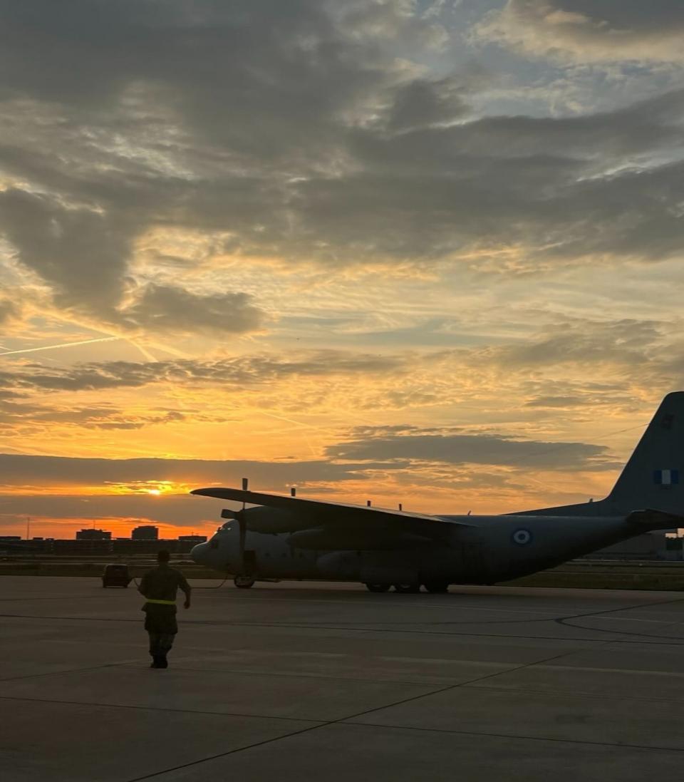 --- Ένα μεταφορικό αεροσκάφος C-130H Hercules της 356 Μοίρας Τακτικών Μεταφορών (356 ΜΤΜ) και ανάλογο ιπτάμενο και τεχνικό προσωπικό της Πολεμικής Αεροπορίας.