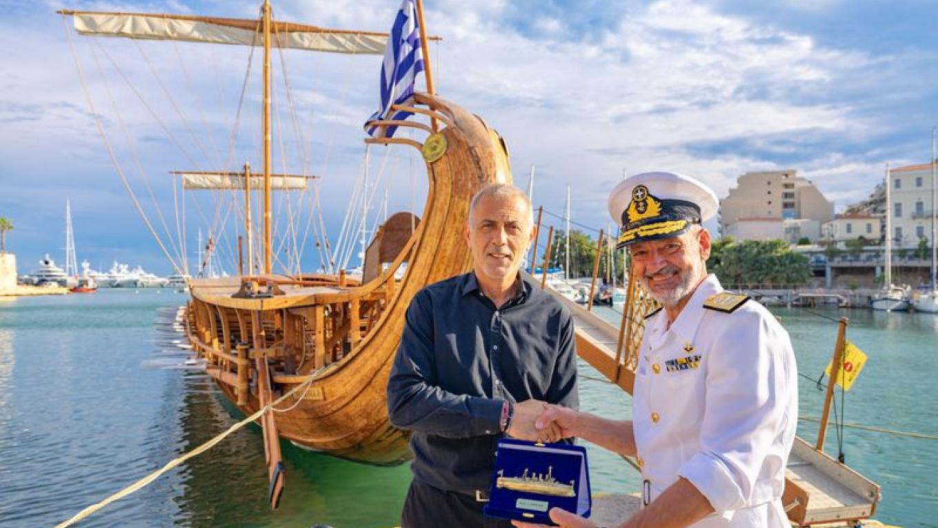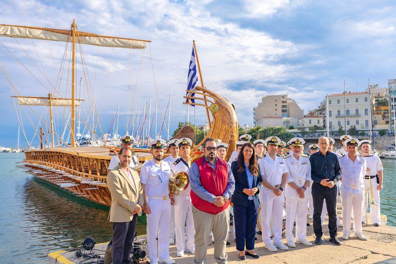 Η τριήρης «ΟΛΥΜΠΙΑΣ» αποτελεί το μοναδικό πιστό λειτουργικό αντίγραφο της αρχαίας Αθηναϊκής τριήρους του 5ου π.Χ. αιώνος, και ο Δήμαρχος υποδέχτηκε τον Κυβερνήτη του θρυλικού «Γ.ΑΒΕΡΩΦ», που σήμερα λειτουργεί ως Πλοίο-Μουσείο του Πολεμικού μας Ναυτικού, Αρχιπλοίαρχο Βασίλειο Ασημακόπουλο ΠΝ και τον Κυβερνήτη της τριήρους Υποπλοίαρχο Εμμανουήλ Ζορμπά ΠΝ.
