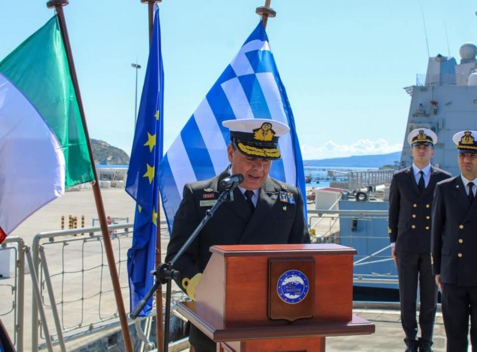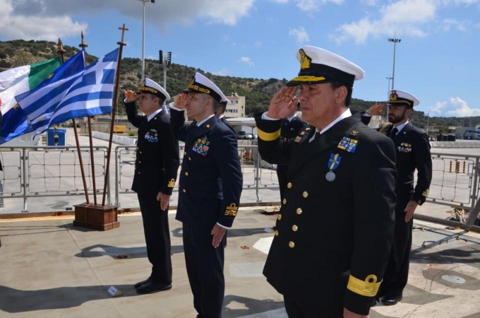 Η τελετή παραδόσεως καθηκόντων του εν πλω Διοικητή της ναυτικής επιχειρήσεως «IRINI» της Ευρωπαϊκής Ενώσεως από την Ελλάδα στην Ιταλία πραγματοποιήθηκε προ ημερών στο Ναύσταθμο Κρήτης.