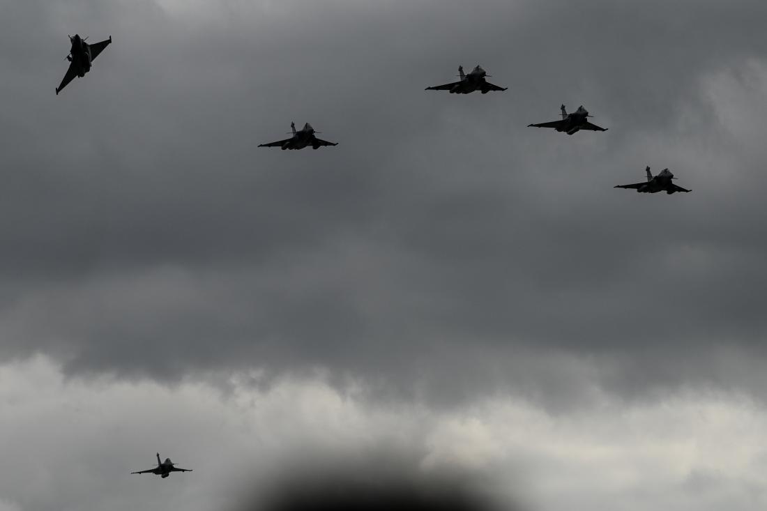 Ώρα 12:44.. τα έξι γαλανόλευκα RAFALE με Έλληνες χειριστές φτάνουν σε σχηματισμούς στην αεροπορική βάση της Τανάγρας. Η διέλευσή τους προκαλεί δέος και θαυμασμό. Είναι οι νέοι φρουροί των ελληνικών αιθέρων.