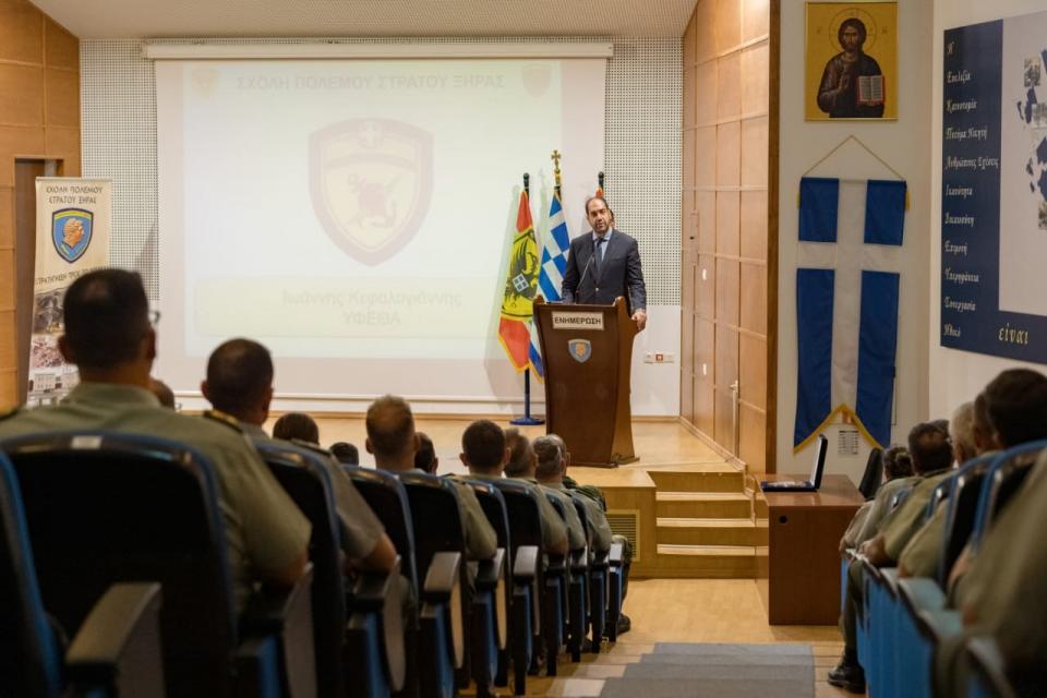 Κατά τις επισκέψεις του αυτές ο κ. Κεφαλογιάννης ενημερώθηκε για την οργάνωση, την αποστολή και τις τρέχουσες δραστηριότητές τους, περιηγήθηκε στις εγκαταστάσεις και συνομίλησε με το προσωπικό, ενώ απηύθυνε χαιρετισμό προς τους σπουδαστές της ΣΠΣΞ. Ο ΥΦΕΘΑ συνεχάρη τους εκπαιδευτές και τη Διοίκηση της Σχολής για το ιδιαίτερα υψηλό επίπεδο εκπαιδεύσεως, παροτρύνοντας τους σπουδαστές της να συνεχίσουν την προσπάθεια ενημερώσεως και καταρτίσεώς τους, καθ’ όλη τη διάρκεια του επαγγελματικού τους βίου, ώστε να διευρύνουν διαρκώς την κριτική τους ικανότητα και τη στρατηγική τους αντίληψη, ενώ δεν παρέλειψε να υπογραμμίσει ότι η πολιτική ηγεσία του ΥΠΕΘΑ προσβλέπει σε μια συνεχή αναβάθμιση της Σχολής και θα είναι αρωγός σε ό,τι ζητηθεί, με γνώμονα την προώθηση του εκπαιδευτικού έργου, όπως επισήμανε χαρακτηριστικώς.