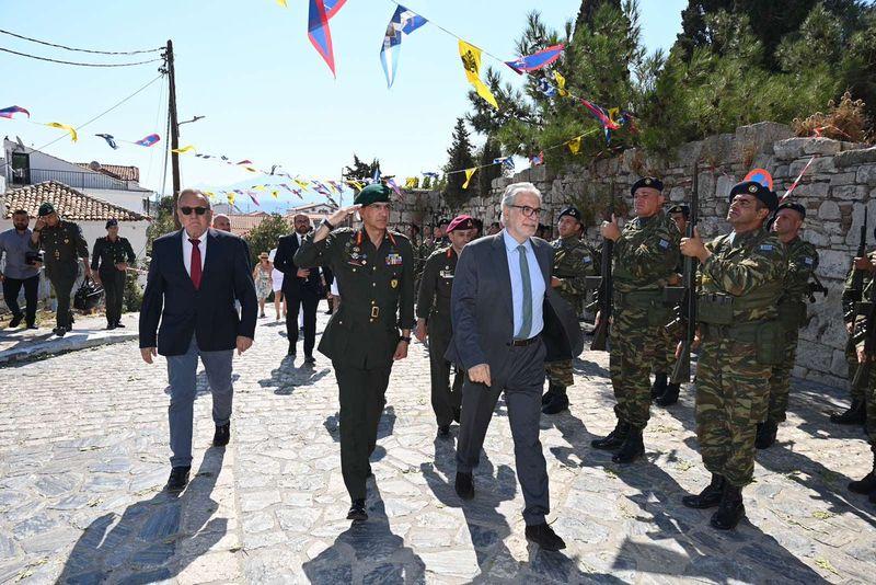 Στις εκδηλώσεις αυτές τις Ένοπλες Δυνάμεις εκπροσώπησαν ο Αρχηγός ΓΕΕΘΑ Στρατηγός Δημήτριος Χούπης, ο Αρχηγός Στόλου Αντιναύαρχος Πολυχρόνης Κουλούρης ΠΝ, ως εκπρόσωπος του Αρχηγού ΓΕΝ Αντιναυάρχου Δημητρίου – Ελευθερίου Κατάρα ΠΝ, ο Σάμιος στην καταγωγή Επιτελάρχης ΓΕΣ Αντιστράτηγος Δημήτριος Βακεντής, και ο Διοικητής της Ανωτάτης Στρατιωτικής Διοικήσεως Εσωτερικού – Νήσων (ΑΣΔΕΝ) Αντιστράτηγος Εμμανουήλ Θεοδώρου, ως εκπρόσωποι του Αρχηγού ΓΕΣ Αντιστρατήγου Γεωργίου Κωστίδη, ενώ παρέστη επίσης ο Επίτιμος Αρχηγός ΓΕΣ και πρώην Υπουργός Προστασίας του Πολίτη Στρατηγός ε.α. Χαράλαμπος Λαλούσης.