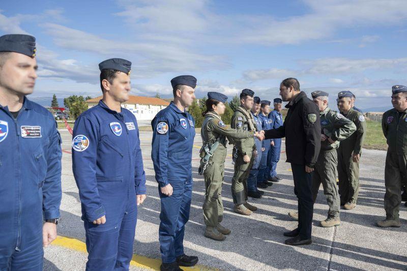 Στη συνέχεια ο ΥΦΕΘΑ επισκέφθηκε την έδρα του ΑΤΑ, όπου έγινε δεκτός από τον Αρχηγό ΑΤΑ Αντιπτέραρχο (Ι) Γεώργιο Φασούλα και στη συνέχεια συνοδευόμενος από αυτό, επισκέφθηκε διαδοχικώς, το Εθνικό Κέντρο Αεροπορικών Επιχειρήσεων (ΕΚΑΕ), την 390 Μοίρα Μη Επανδρωμένων Αεροσκαφών (390 Μ.ΜΕΑ) και την 337 Μοίρα της 110 Πτέρυγος Μάχης, εξοπλισμένης με μαχητικά F-16C/D Block.52. Ας σημειωθεί ότι στην ιστορική 337 Μοίρα «Φάντασμα» υπηρετεί μία γυναίκα πιλότος, η οποία μάλιστα ήταν πλήρωμα στο ένα από τα δύο αεροσκάφη ετοιμότητος (readiness) της Μονάδος, με τα πληρώματα και τους τεχνικούς των οποίων είχε την ευκαιρία να συνομιλήσει ο Υφυπουργός.