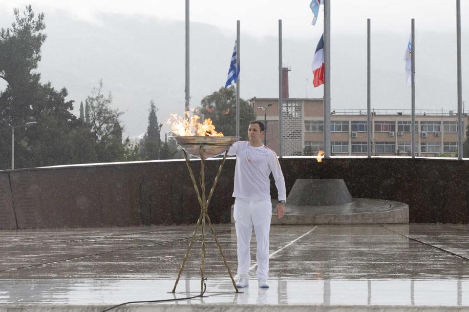 Στο σύντομο χαιρετισμό του ο ΥΦΕΘΑ υπογράμμισε, μεταξύ άλλων, ότι «η Ολυμπιακή φλόγα αποτελεί σύμβολο των ιδεωδών του Ολυμπισμού, δηλαδή της ειρήνης, της συνεργασίας, της ευγενούς άμιλλας και του ευ αγωνίζεσθαι, καθώς και μία γέφυρα που ενώνει τους αγώνες της αρχαιότητας με τους σημερινούς. Παράλληλα, τόνισε την ιδιαίτερη ικανοποίησή του για το γεγονός ότι οι φετινοί Ολυμπιακοί Αγώνες θα πραγματοποιηθούν σε μία χώρα με την οποία μας συνδέουν βαθύτατοι ιστορικοί δεσμοί αδελφοσύνης, επισημαίνοντας την πεποίθηση ότι θα στεφθεί από επιτυχία και θα συμβάλλει στην προσπάθεια του Ολυμπιακού κινήματος για επίτευξη εκεχειρίας και μετριασμό των διεθνών εντάσεων, σε μία ιδιαίτερα δύσκολη διεθνή συγκυρία».