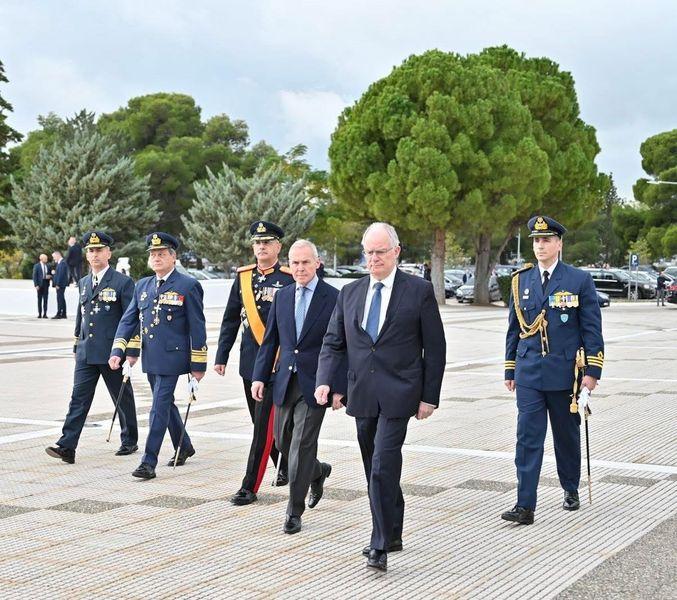 Στην επίσημη τελετή του εορτασμού του Προστάτη της Πολεμικής Αεροπορίας Αρχαγγέλου Μιχαήλ, που πραγματοποιήθηκε στις εγκαταστάσεις της Σχολής Ικάρων, στην ιστορική Αεροπορική Βάση Δεκελείας, στο Τατόϊ, παρέστη ο Πρόεδρος της Ελληνικής Δημοκρατίας κ. Κωνσταντίνος Τασούλας, συνοδευόμενος από τον Υφυπουργό Εθνικής Αμύνης κ. Θανάση Τασούλα ως εκπροσώπου της Κυβερνήσεως.
