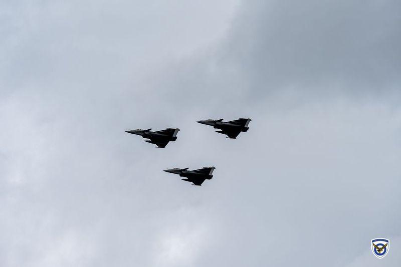 Αξίζει να σημειωθεί ότι στη διάρκεια της τελετής πέταξαν πάνω από το χώρο μία τριάδα μαχητικών αεροσκαφών τύπου Rafale από την 114 Πτέρυγα Μάχης στην Αεροπορική Βάση της Τανάγρας, καθώς και τα θρυλικά παλαιά αεροσκάφη της Πολεμικής μας Αεροπορία Spitfire και T-6A Harvard, συνδέοντας έτσι με τον καλύτερο τρόπο το χθες, με το σήμερα και το αύριο της ΠΑ.