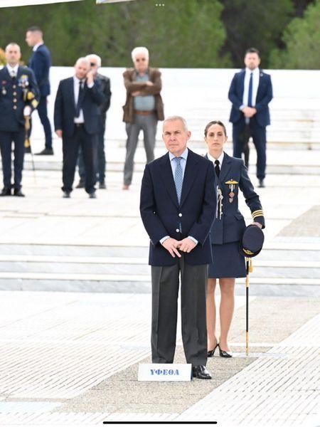Η σημερινή ημέρα ανήκει όμως και σε όλους αυτούς, τις γυναίκες και τους άνδρες της Πολεμικής μας Αεροπορίας, που με τις πτήσεις των αεροσκαφών τους, διασφαλίζουν το «Αιέν Υψικρατείν» και το γαλανό του ουρανού μας.