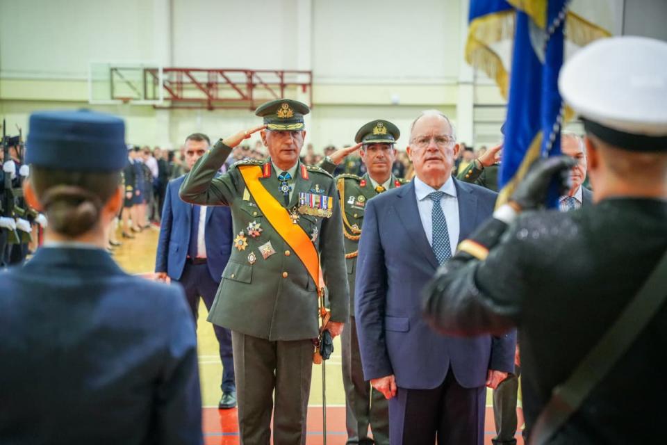«Σήμερα εδώ στη Θεσσαλονίκη παραβρεθήκαμε σε μια ιδιαίτερα σημαντική στιγμή για τους νέους αξιωματικούς της Στρατιωτικής Σχολής Αξιωματικών Σωμάτων: Στον όρκο πίστης που έδωσαν προς την Πατρίδα. Οι νέοι Αξιωματικοί εντάσσονται πλέον στις τάξεις του Στρατεύματος, έτοιμοι να υπηρετήσουν με πίστη, αφοσίωση και υψηλό αίσθημα ευθύνης το καθήκον προς την Πατρίδα και τον συνάνθρωπο.