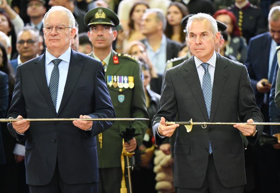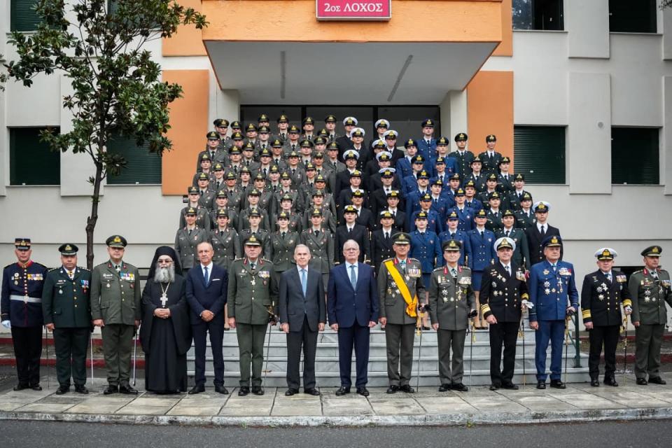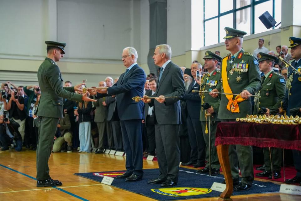 Η τελετή της ορκωμοσίας και επιδόσεως των ξιφών στους νέους αξιωματικούς αποφοίτους της Στρατιωτικής Σχολής Αξιωματικών Σωμάτων (ΣΣΑΣ) πραγματοποιήθηκε από τον Πρόεδρο της Ελληνικής Δημοκρατίας κ. Κωνσταντίνο Τασούλα, ο οποίος συνοδευόταν από τον Υφυπουργό Εθνικής Αμύνης κ. Θανάση Δαβάκη, ως εκπρόσωπος του Πρωθυπουργού κ. Κυριάκου Μητσοτάκη, στις εγκαταστάσεις της Σχολής στη Θεσσαλονίκη.
