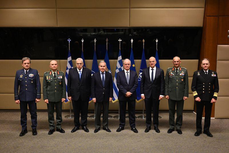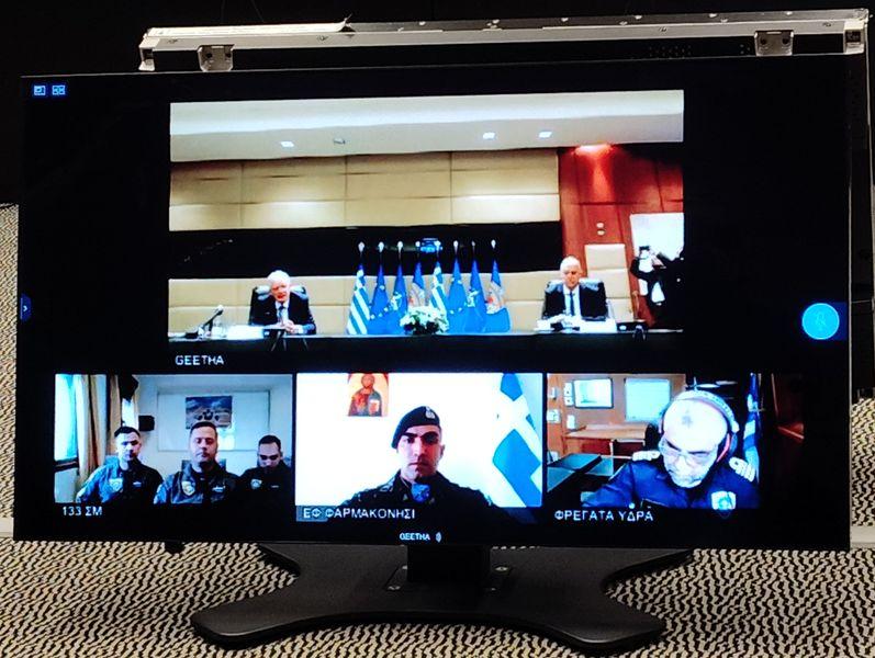 Ο κ. Προέδρος, παρουσία του Υπουργού Εθνικής Αμύνης κ. Νίκου Δένδια, του Υφυπουργού Εθνικής Αμύνης κ. Θανάση Δαβάκη, του Γενικού Γραμματέως του ΥΠΕΘΑ κ. Αντώνη Οικονόμου, των Αρχηγών ΓΕΕΘΑ Στρατηγού Δημητρίου Χούπη, ΓΕΣ Αντιστρατήγου Γεωργίου Κωστίδη, ΓΕΝ Αντιναυάρχου Δημητρίου – Ελευθερίου Κατάρα ΠΝ και ΓΕΑ Αντιπτεράρχου (Ι) Δημοσθένη Γρηγοριάδη, καθώς και των αρμοδίων επιτελών όλων των Κλάδων των Ενόπλων Δυνάμεων, είχε επικοινωνία με τα προαναφερθέντα στελέχη, όπου – σε γενικές γραμμές – ελέχθησαν τα εξής: