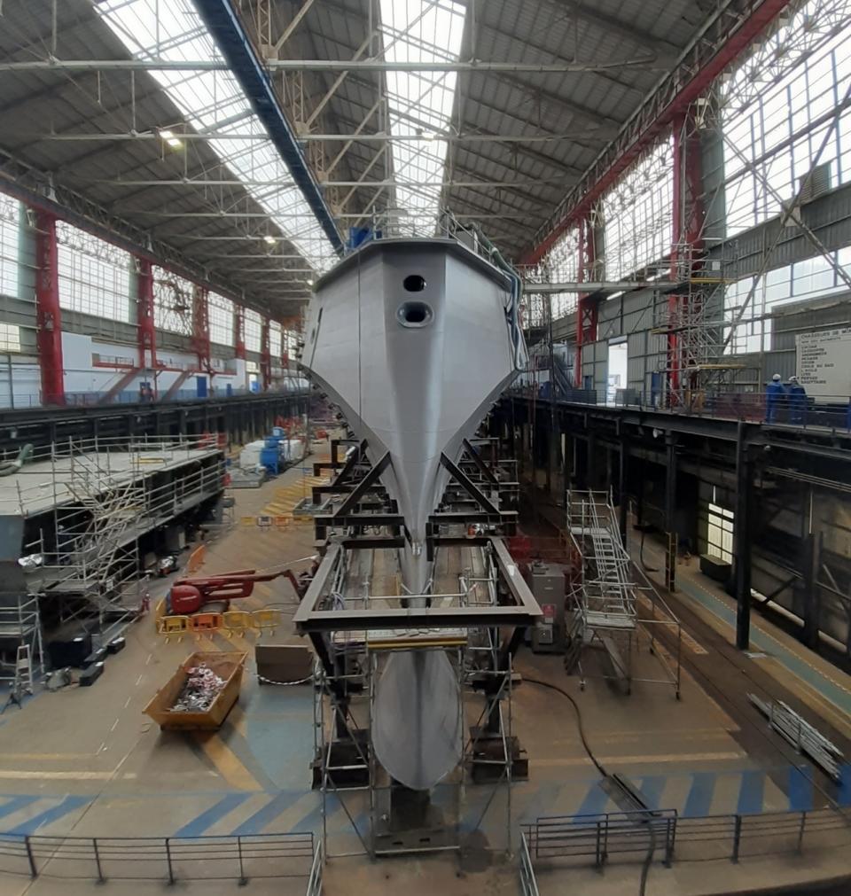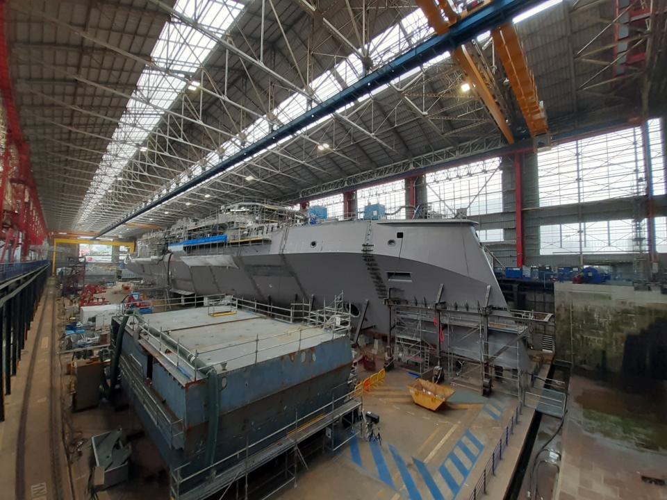 Δεύτερο, στο πλαίσιο της DEFEA’23, η κατασκευάστρια εταιρεία Naval Group της πρώτης ελληνικής φρεγάτας FDI-HN, της φρεγάτας «ΚΙΜΩΝ», έδωσε στη δημοσιότητα σειρά φωτογραφιών του σκάφους πάνω στη ναυπηγική κλίνη που έχουν ληφθεί στις 4 Μαΐου, προφανώς για να δημοσιοποιηθούν στην Έκθεση. Οι φωτογραφίες αυτές δείχνουν το σκάφος σε προχωρημένη φάση κατασκευής, ενώ δημοσιοποιήθηκε και φωτογραφία του ενδέκατου και τελευταίου τομέως του σκάφους, του ιστού με όλα τα ραντάρ και τους αισθητήρες, και του μοναδικού που τοποθετείται κάθετα επ’ αυτού, σε αντίθεση με τους άλλους δέκα τομείς που τοποθετούνται καθ’ οριζόντια διάταξη ο ένας δίπλα στον άλλο.