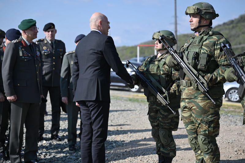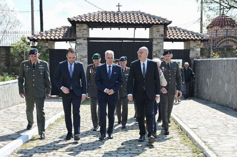 Στη συνέχεια, ο κ. Δένδιας επισκέφτηκε το Στρατόπεδο «Υποστρατήγου Νικολάου Δελαγραμμάτικα» στον Προβατώνα Έβρου, όπου παρακάθισε στο πασχαλινό γεύμα και αντάλλαξε ευχές για το Πάσχα με τα στελέχη και τους οπλίτες θητείας.