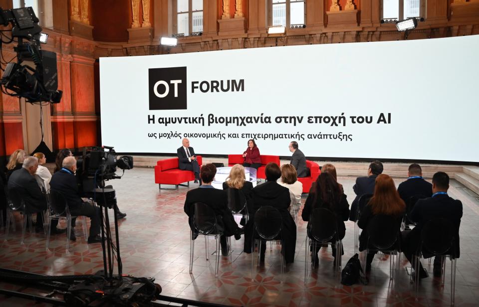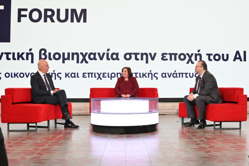 Ο κ. Δένδιας συνομίλησε με τους δημοσιογράφους Αλεξάνδρα Φωτάκη και Δημήτρη Μανιάτη στην ενότητα με τίτλο: «Η αμυντική βιομηχανία στην εποχή του AI ως μοχλός οικονομικής και επιχειρηματικής ανάπτυξης».