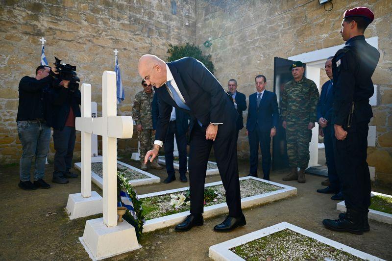 Αμέσως μετά ο κ. Δένδιας έγινε δεκτός από τον Αρχιεπίσκοπο Νέας Ιουστινιανής και πάσης Κύπρου κ.κ. Γεώργιο, στην Ιερά Αρχιεπισκοπή Κύπρου, από όπου μετέβη στα Φυλακισμένα Μνήματα, στη Λευκωσία, όπου κατέθεσε στέφανο στο μνήμα του Γρηγόρη Αυξεντίου, ανήμερα της συμπληρώσεως 69 ετών από τη θυσία του (όπως είχε επισημάνει η ιστοσελίδα μας www.thepressroom.gr σε προηγούμενο σημείωμα).