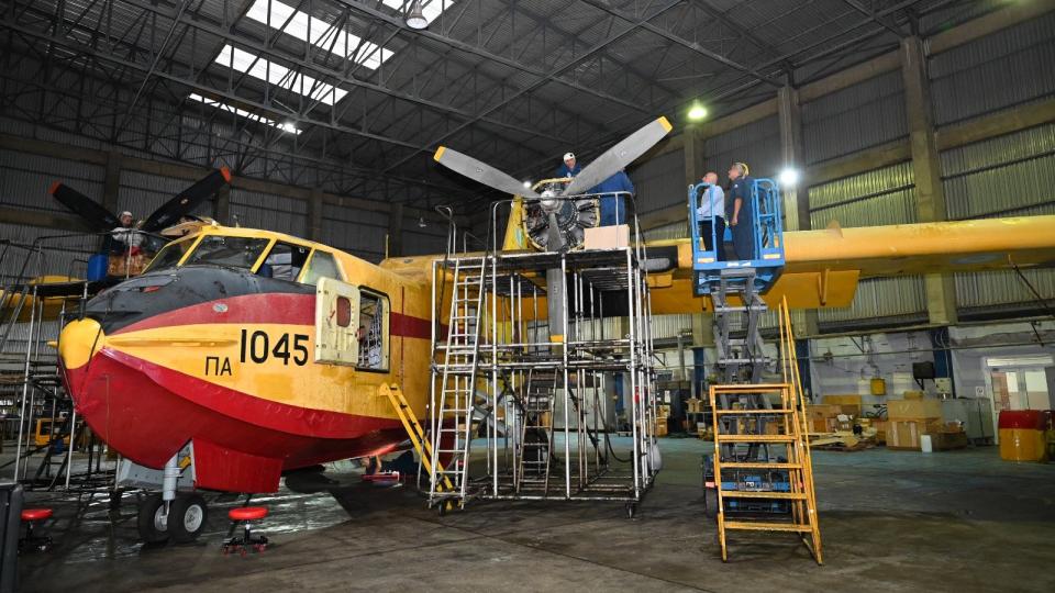 Στο πλαίσιο αυτό εντάσσεται και η ενίσχυση του στόλου με την προμήθεια 7 νέων αεροσκαφών DHC-515 και στην τεχνική αναβάθμιση των υπαρχόντων CL-415…»