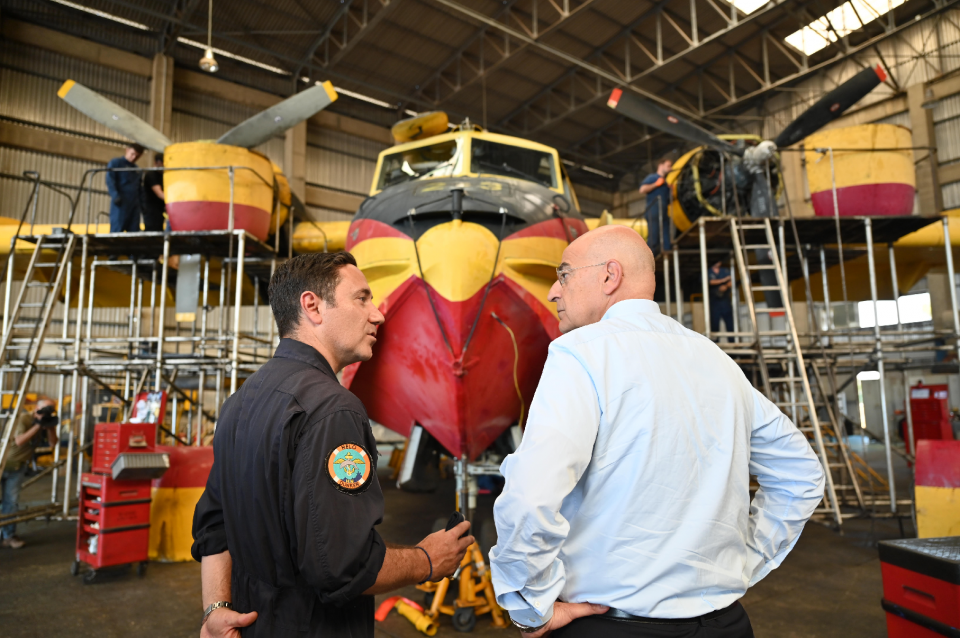 Την παροχή συγκεκριμένου επιδόματος νυχτερινής εργασίας στους τεχνικούς που μάχονται σε δυσχερέστατες συνθήκες, κάθε βράδυ, για να κρατάνε τα αμφίβια δασοπυροσβεστικά αεροσκάφη Canadair CL-215 και CL-415 αξιόμαχα, παρά τη μεγάλη ηλικίας τους, ιδίως τα πρώτα, εξήγγειλε σήμερα ο Υπουργός Εθνικής Αμύνης κ. Νίκος Δένδιας, κατά την επίσκεψή του στην 355 Μοίρα Τακτικών Μεταφορών (355 ΜΤΜ) στην 112 Πτέρυγα Μάχης στην Αεροπορική Βάση Ελευσίνος.