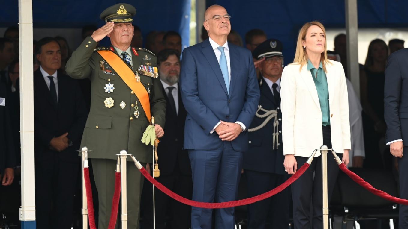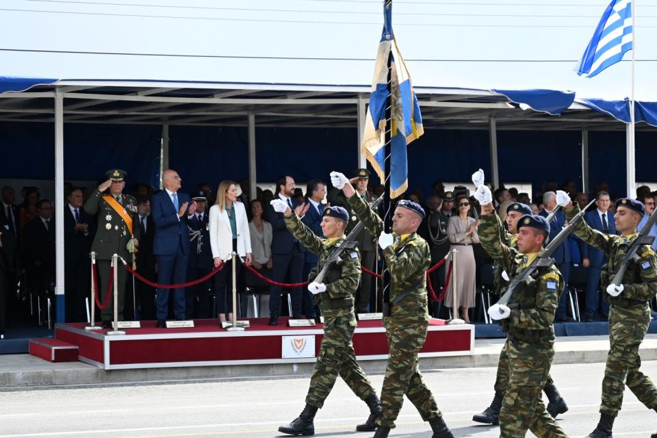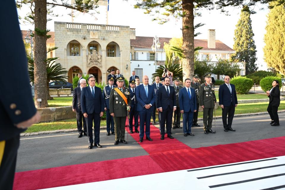 «Θέλω να πω, εδώ από την Λευκωσία, ότι για την Ελλάδα των “Belharra”, των “Rafale” και των “Viper” η Κύπρος δεν κείται μακράν» τόνισε με έμφαση ο Έλλην Υπουργός στη δήλωσή του μετά το πέρας της παρελάσεως, ενώπιον του Προέδρου της Κυπριακής Δημοκρατίας κ. Νίκου Χριστοδουλίδη, πλαισιωμένο για πρώτη φορά και από την Πρόεδρο του Ευρωπαϊκού Κοινοβουλίου κα Ρομπέρτα Μέτσολα, γεγονός με ιδιαίτερη σημασία από πολιτικής/διπλωματικής πλευράς.