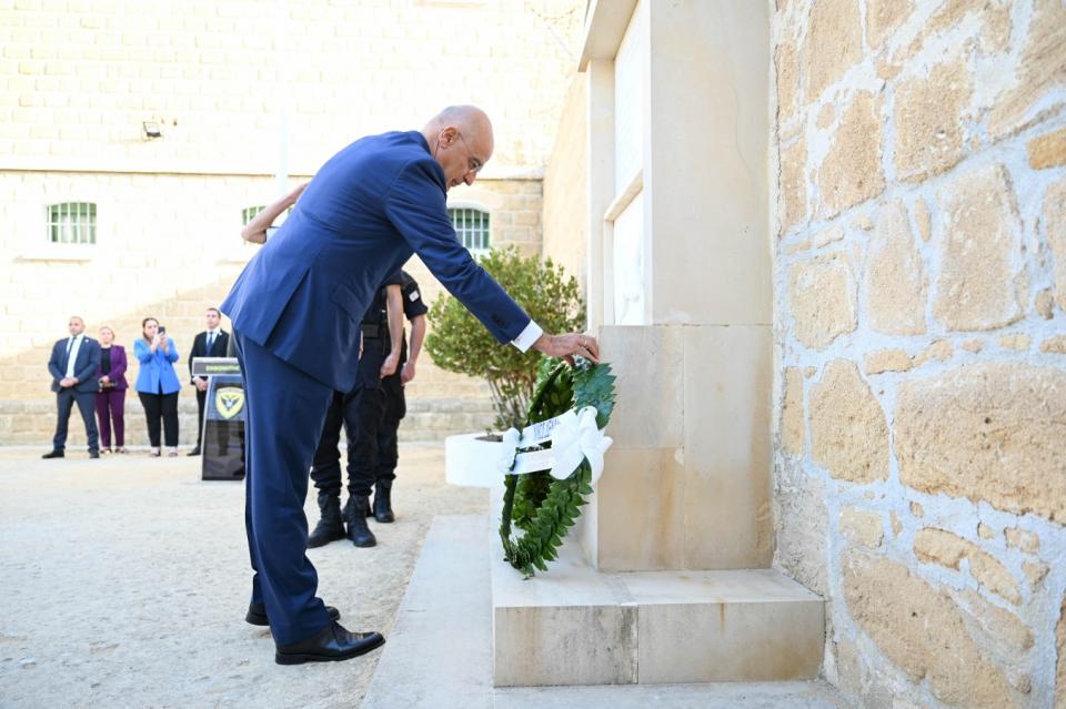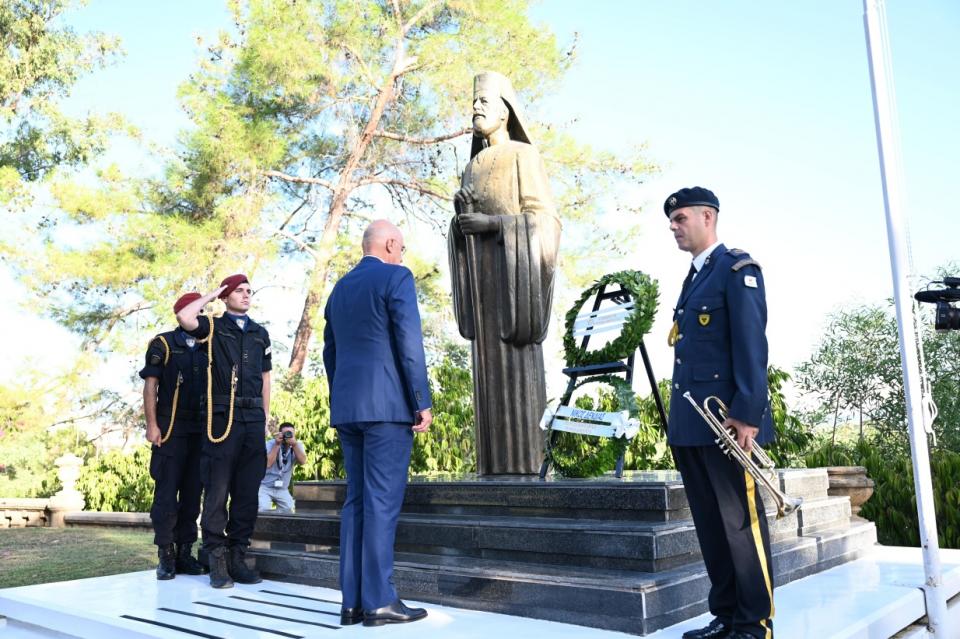 Στο πλαίσιο της παραμονής του στη Λευκωσία ο κ. Υπουργός μετέβη κατ’ αρχάς στο Προεδρικό Μέγαρο, στη Λευκωσία, όπου κατέθεσε στέφανο στον ανδριάντα του Αρχιεπισκόπου Μακαρίου Γ’, ενώ στη συνέχεια παρέστη επίσης στην επιμνημόσυνη δέηση, στο «Μνημείο Δημοκρατίας και Αντίστασης» στο Πάρκο του Προεδρικού Μεγάρου, μετά την οποία κατέθεσε στέφανο, όπως έκανε το ίδιο και λίγο αργότερα στα Φυλακισμένα Μνήματα.