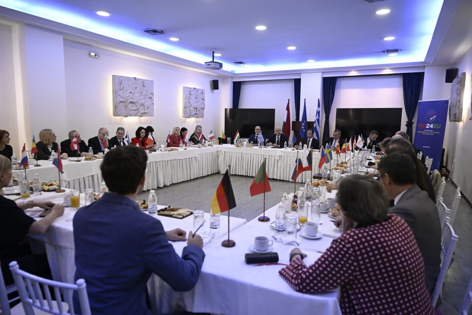 Τέλος, μετά το πέρας του προγεύματος, ο ΥΕΘΑ σε δηλώσεις του ανέφερε, μεταξύ άλλων, τα κάτωθι: «Είχα σήμερα την ευκαιρία, μετά από πρόσκληση του Ούγγρου Πρέσβη, να ενημερώσω τους Πρέσβεις της ΕΕ στην Αθήνα για την «Ατζέντα 2030», για τη μεταρρύθμιση των ελληνικών Ενόπλων Δυνάμεων και συνολικά για τις μεγάλες αλλαγές που κάνουμε στο Υπουργείο Εθνικής Άμυνας.