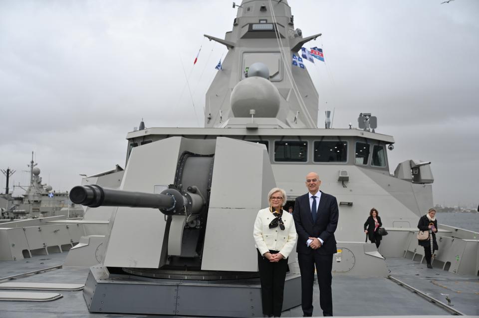 Από την πλευρά της, η Γαλλίδα Υπουργός κ. Βοτρέν επισήμανε ότι μια νέα σελίδα ανοίγει στη ναυτική συνεργασία των δύο χωρών κάνοντας λόγο για εξαιρετικό επίπεδο διαλειτουργικότητος που υπάρχει μεταξύ των ναυτικών δυνάμεων των δύο χωρών, υπογραμμίζοντας επίσης την ανάγκη για περαιτέρω εμβάθυνση της αμυντικής συνεργασίας σε βιομηχανικό επίπεδο, ενώ ξεκαθάρισε τονίζοντας ότι τόσο η Ελλάδα όσο και η Γαλλία δεν επιθυμούν την όξυνση των εντάσεων στη νοτιοανατολική Μεσόγειο.